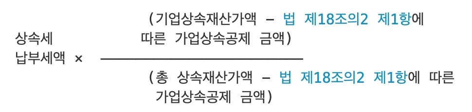 전체 상속세 납부세액이 연부연납기간 특례 대상이 되는 것은 아니고, 다음의 산식에 따라 계산된 세액만 특례 대상에 해당합니다.