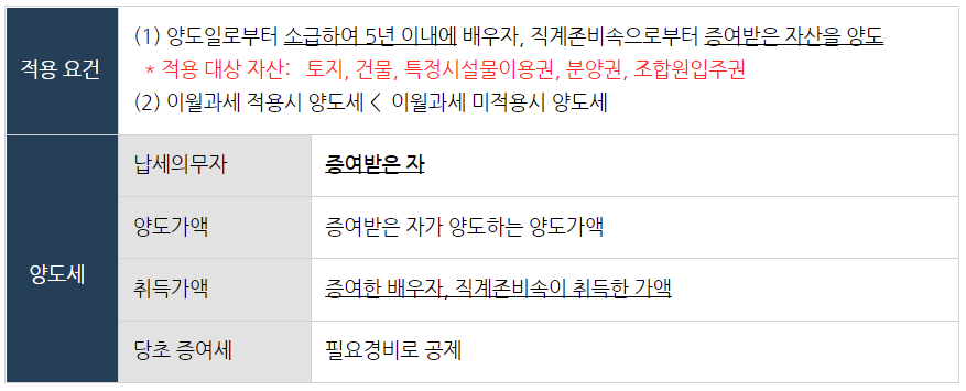 1. 배우자, 직계존비속으로부터 증여받은 자산에 대한 "이월과세" 규정